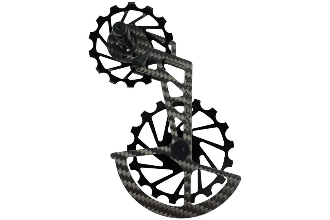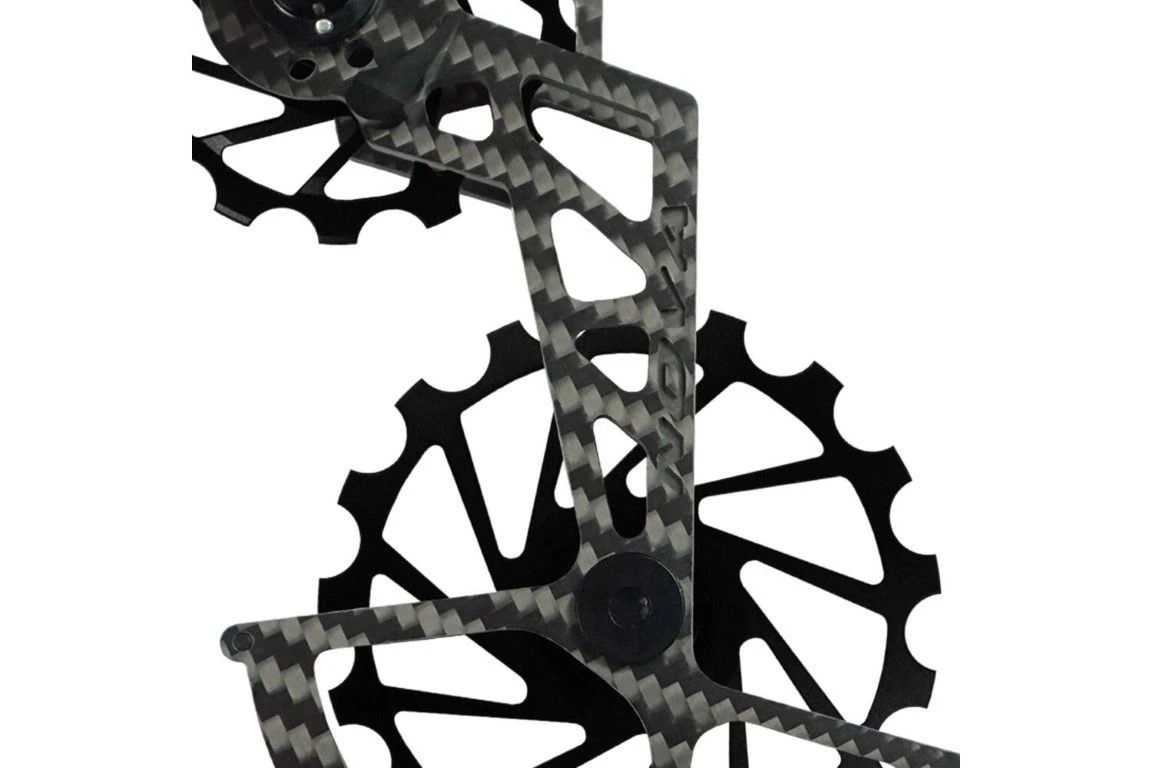 - Dit product bestaat uit een carbonkooi en twee 7075 aluminium pully’s (14 & 17 tanden) met volledig keramische verzegelde lagers.