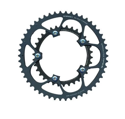 TA Specialites Nerius 11-speed Compact kettingblad speciaal voor Campagnolo 11-speed cranksets. Een goed en slijtvast alternatief voor de originele bladen. TA maakt haar kettingbladen van het beste 7075 T6 aluminium. De tanden worden gefreesd op traditionele wijze op een draaibank die een veel betere en nauwkeurigere tandvorm maakt dan de meeste andere fabrikanten.